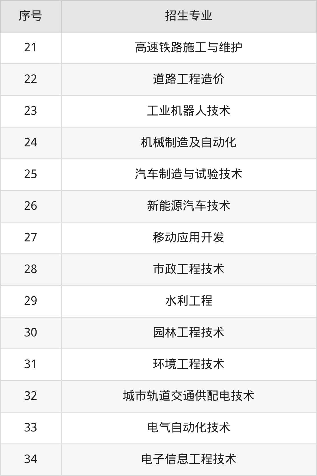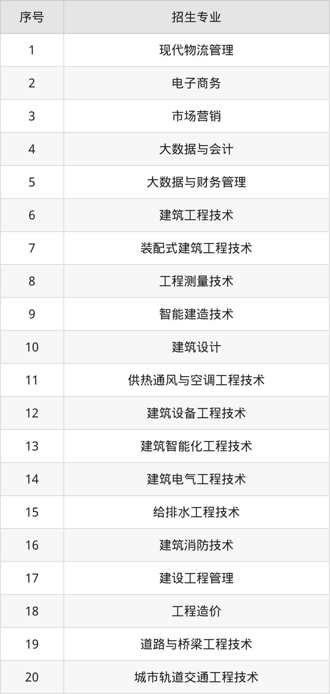 建筑装饰工程技术、古建筑工程技术、装配化装修技术、安全技术与管理、智慧城市管理技术、城市轨道交通运营管理、计算机网络技术、软件技术、人工智能技术应用、建筑动画技术