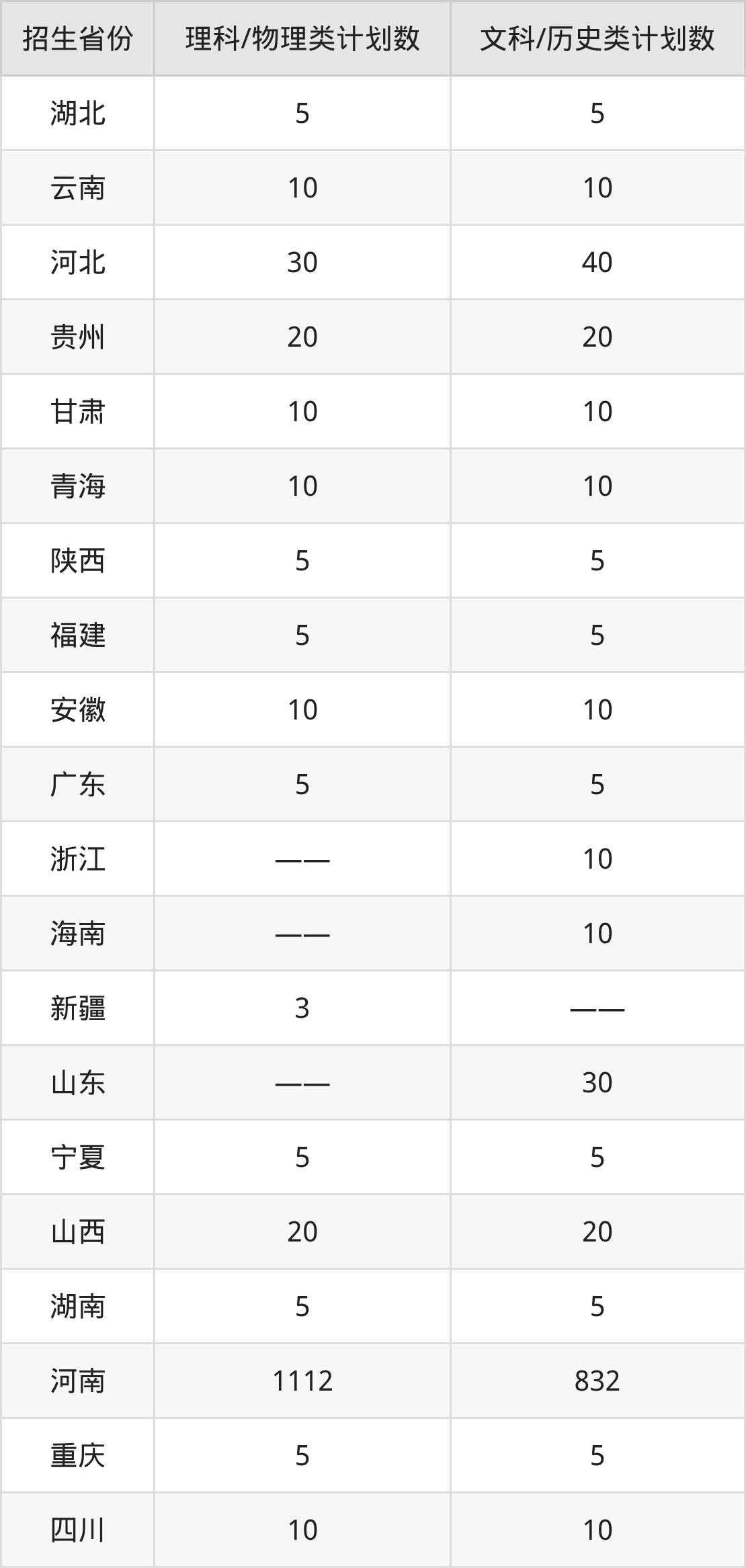 分科类招生计划:3+3省份50人、理科3人、历史类1012人、物理类1282人