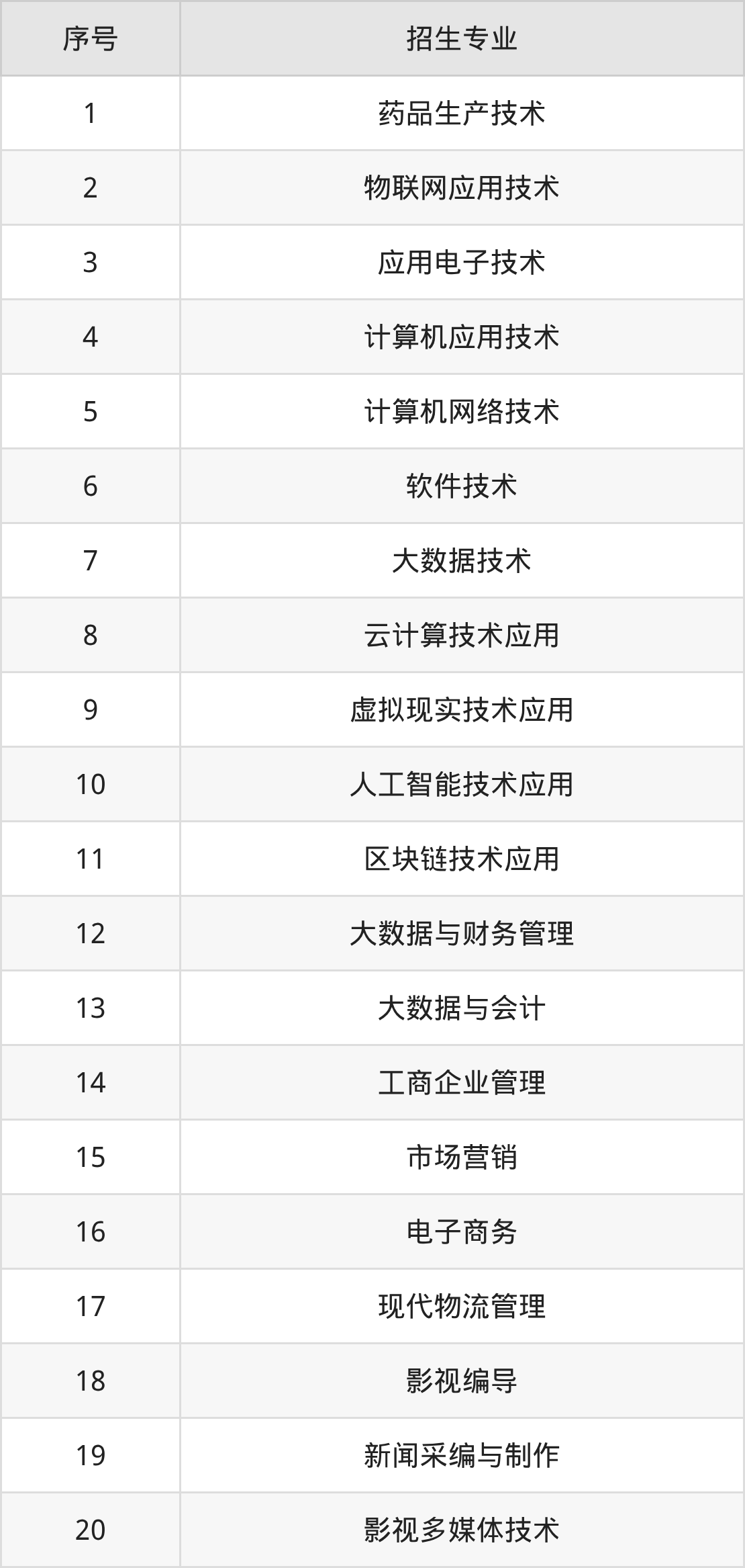 2、招生专业