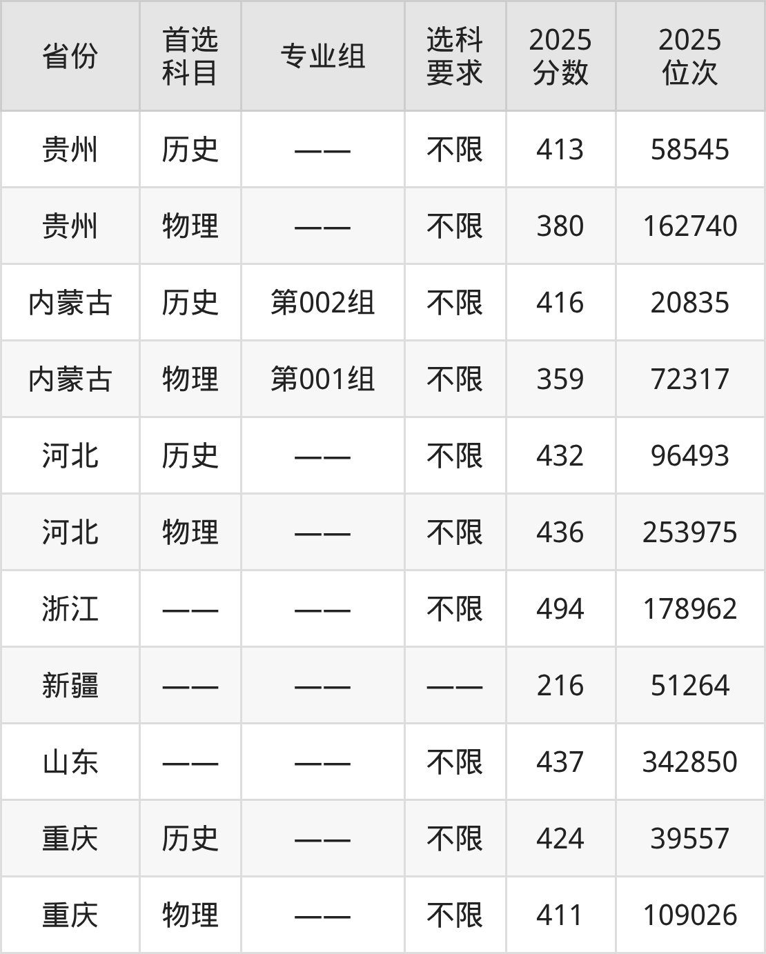 2、内蒙古2025年焦作大学在内蒙古最低录取分数线:历史类416分、物理类359分。