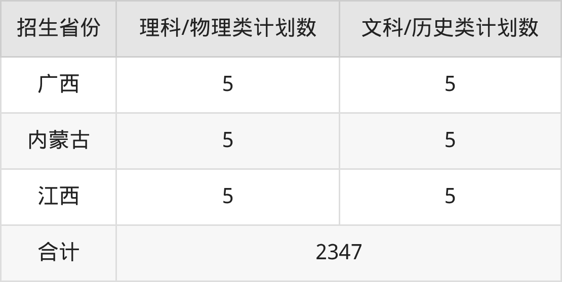 分省招生计划:
