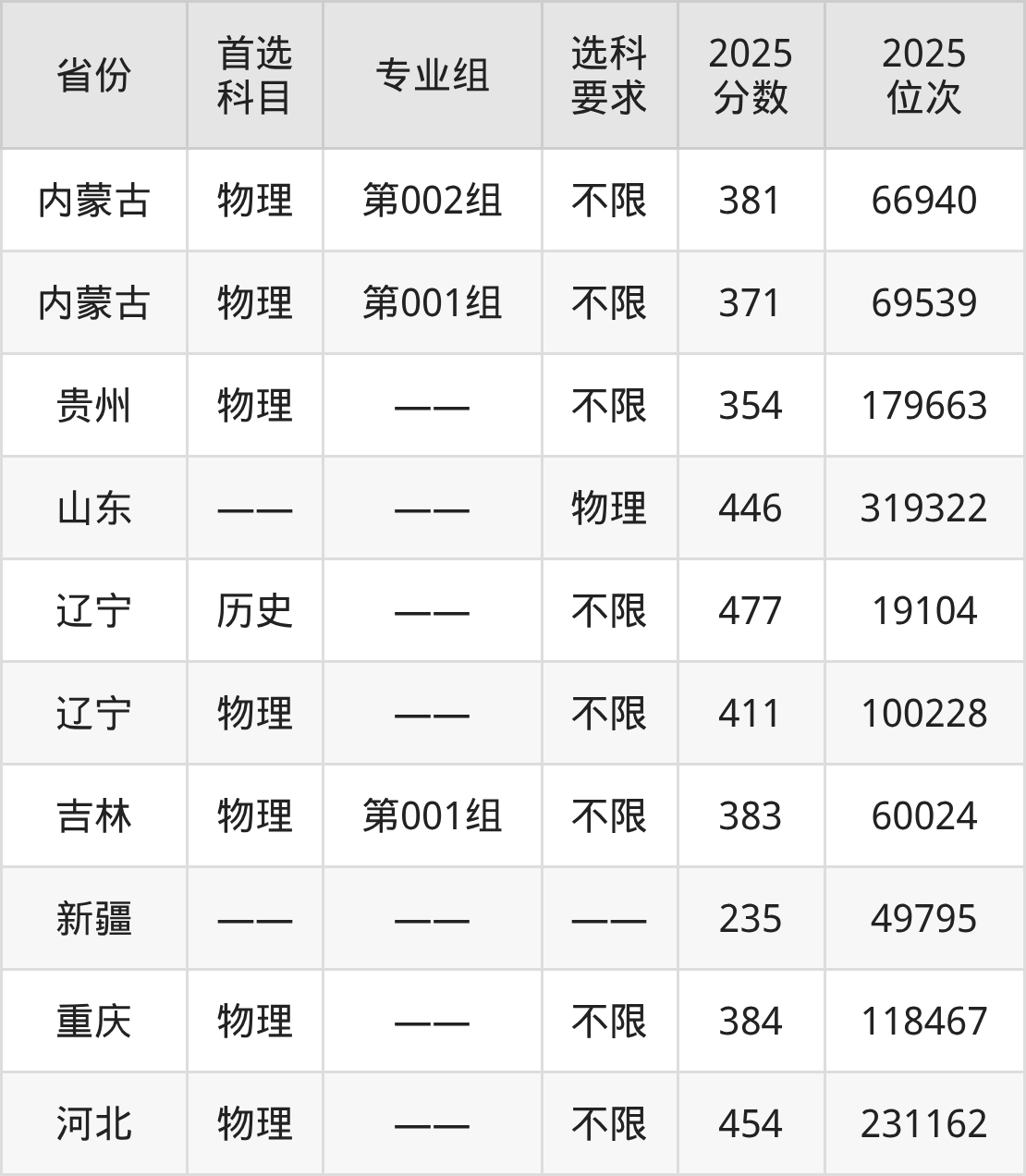 2、贵州2025年辽宁铁道职业技术学院在贵州最低录取分数线:物理类354分。