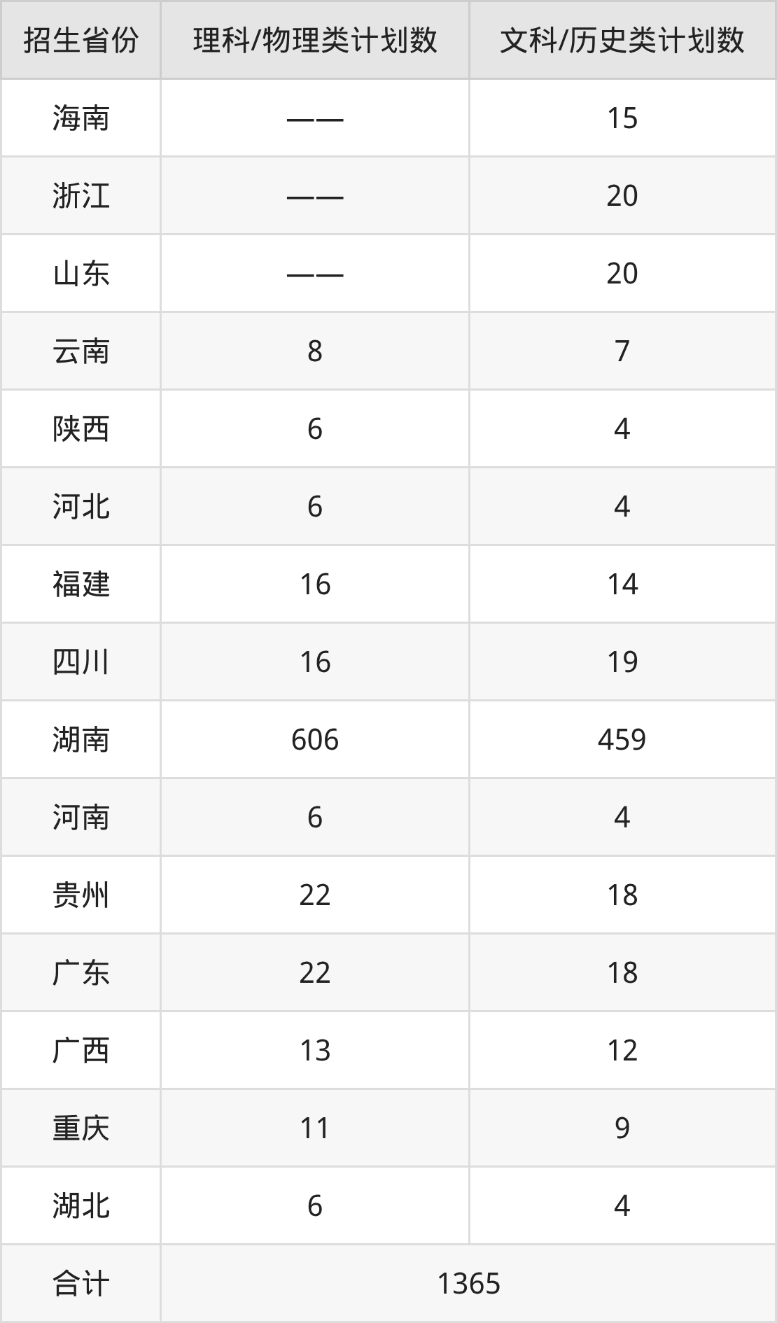 湖南司法警官职业学院招生简章显示:学校在全国15个省(市、自治区)招收1365人,包括历史类572人、物理类738人、3+3省份55人,招生专业有心理咨询、社会工作、公共事务管理等。