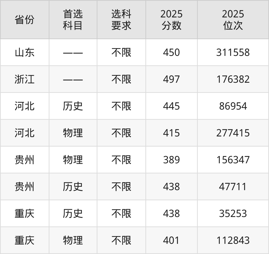 5、重庆2025年湖南司法警官职业学院在重庆最低录取分数线:历史类438分、物理类401分。