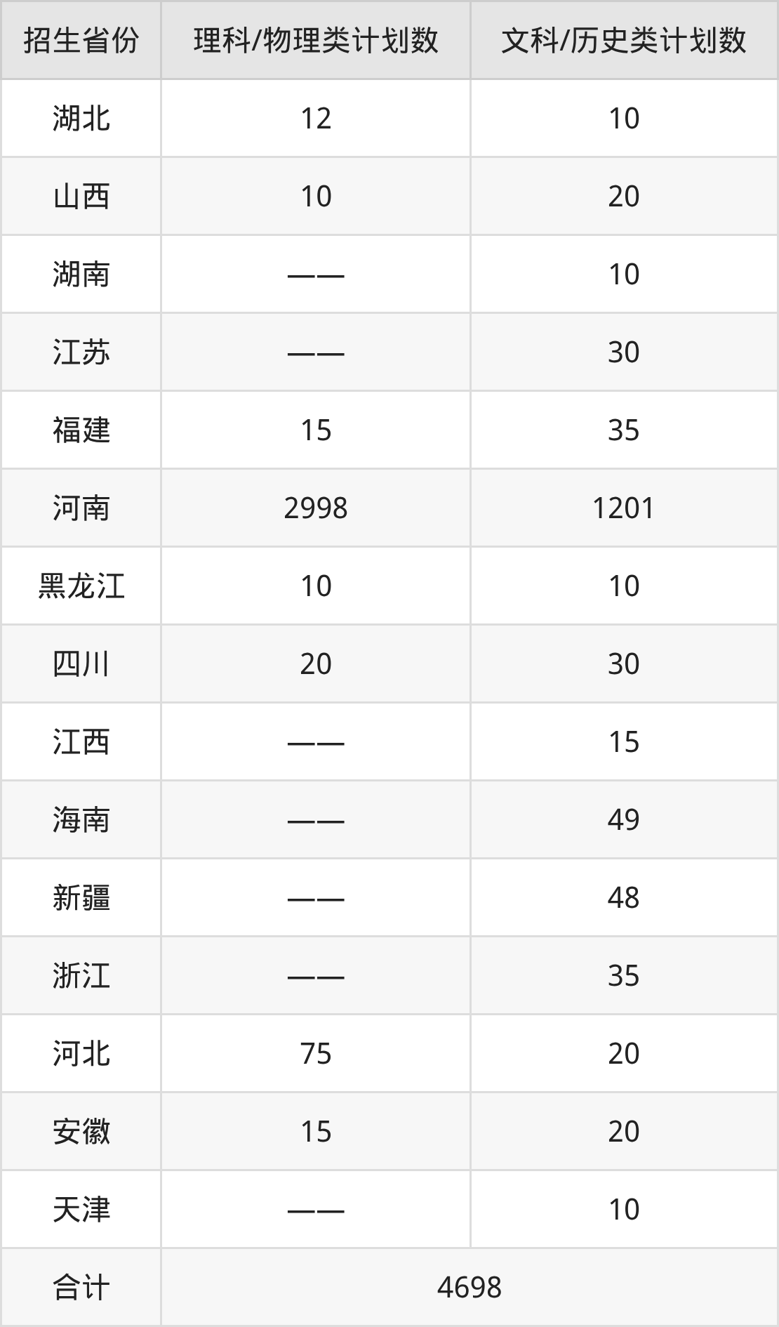 总招生计划:4698人