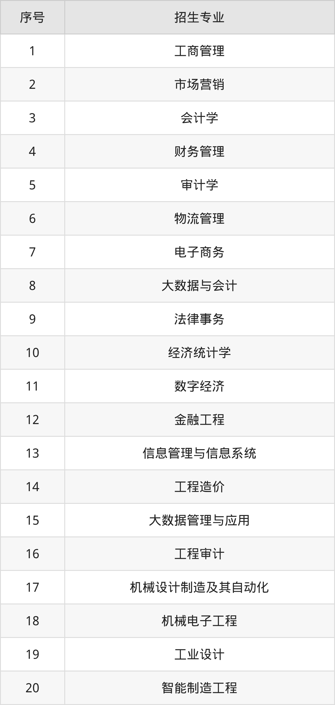 投资学、互联网金融、国际经济与贸易、法学、英语、商务英语、广播电视学、广告学、网络与新媒体、服装设计与工程
