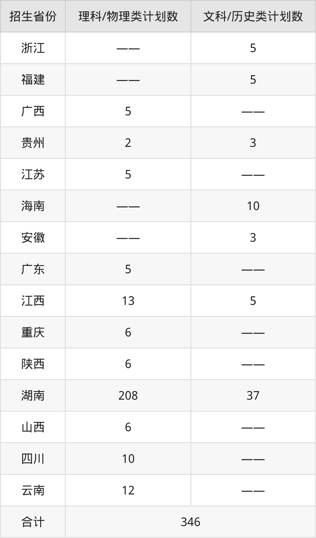总招生计划:346人