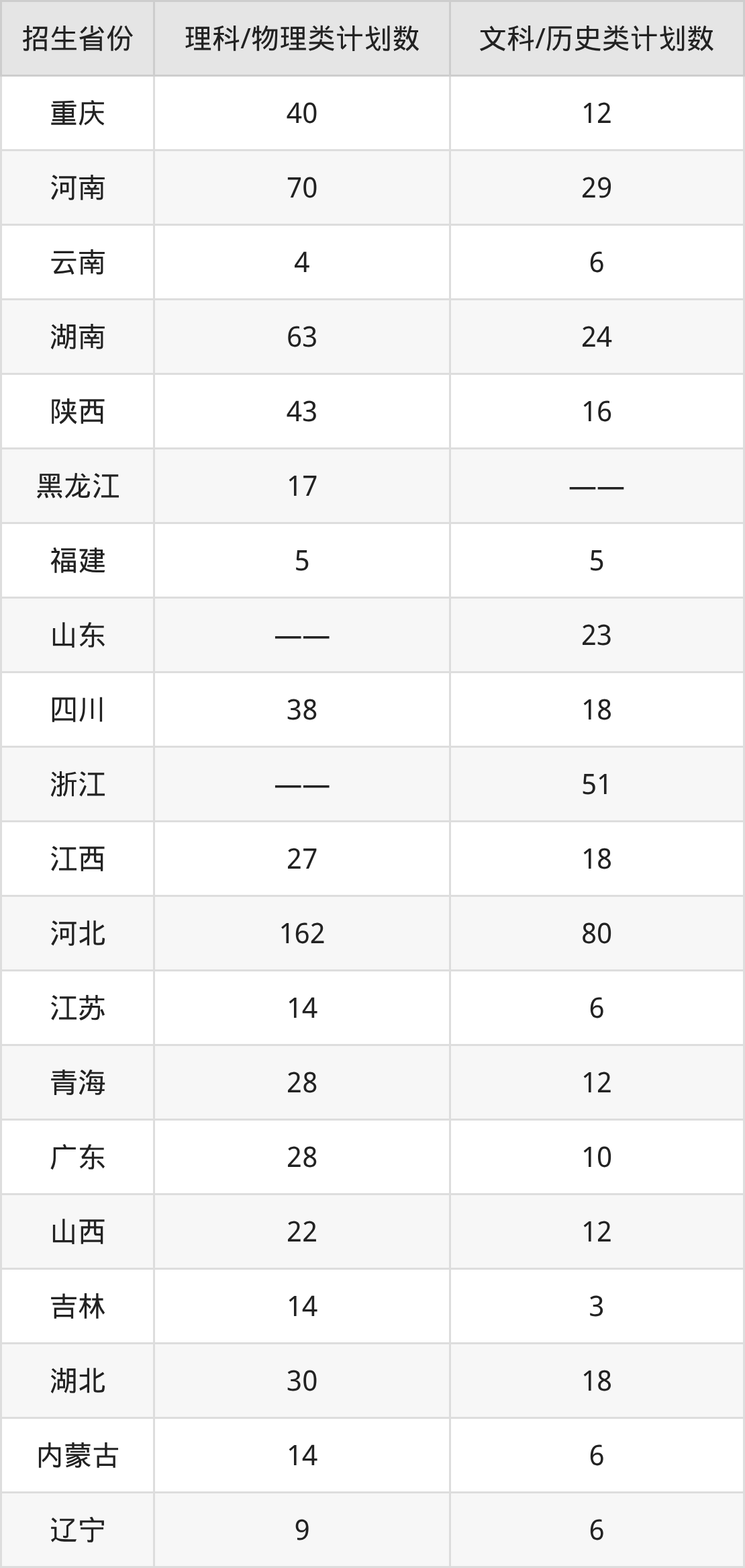 分省招生计划:
