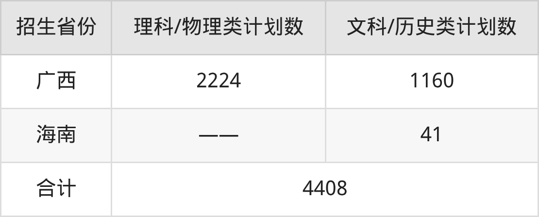 分科类招生计划:3+3省份115人、历史类1441人、物理类2852人