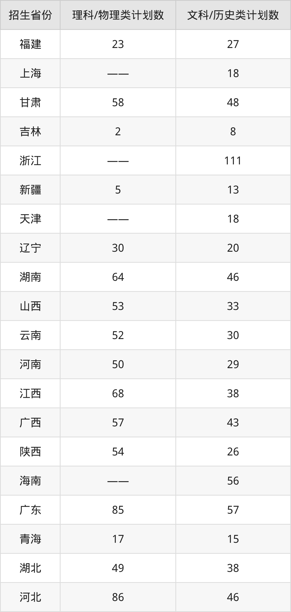 分省招生计划: