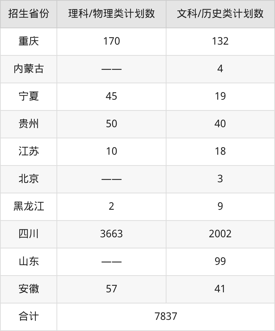 总招生计划:7837人