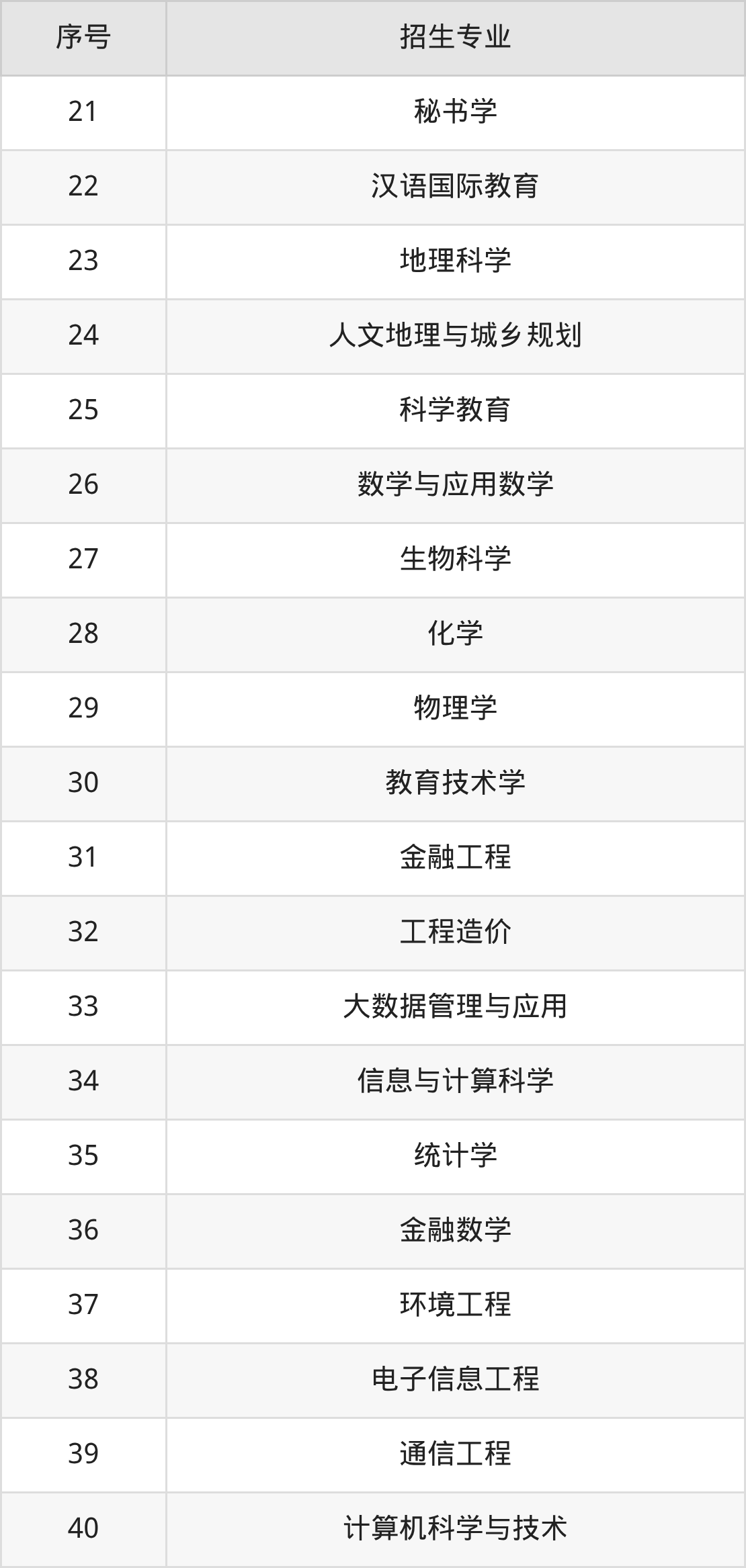 小学教育、心理学、思想政治教育、历史学、英语、汉语言文学、审计学、市场营销、教育学、学前教育