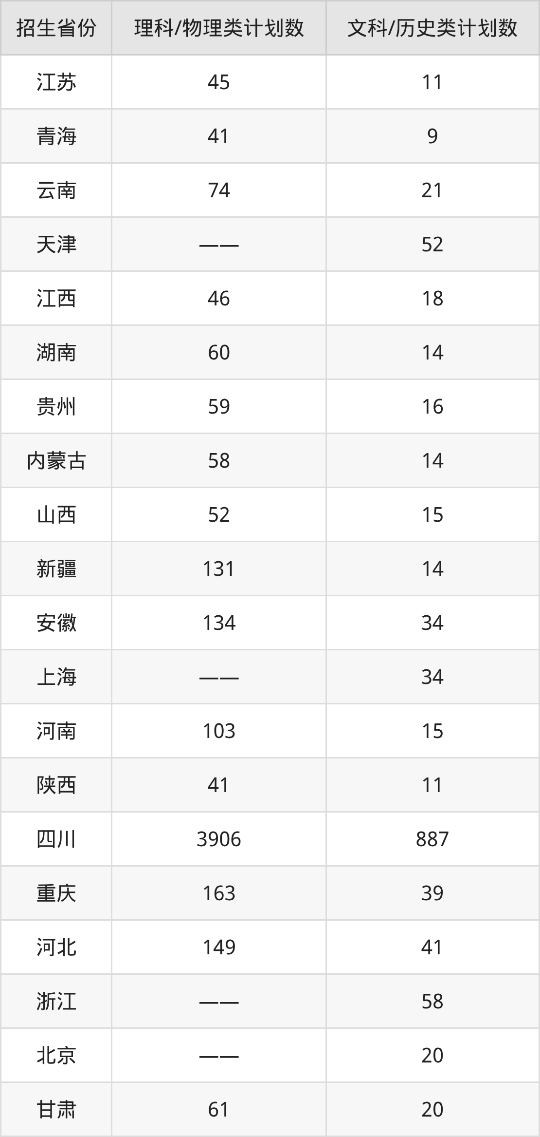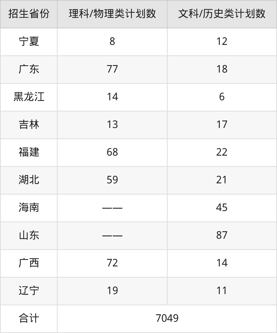 分科类招生计划:理科131人、历史类1286人、物理类5322人、3+3省份296人、文科14人