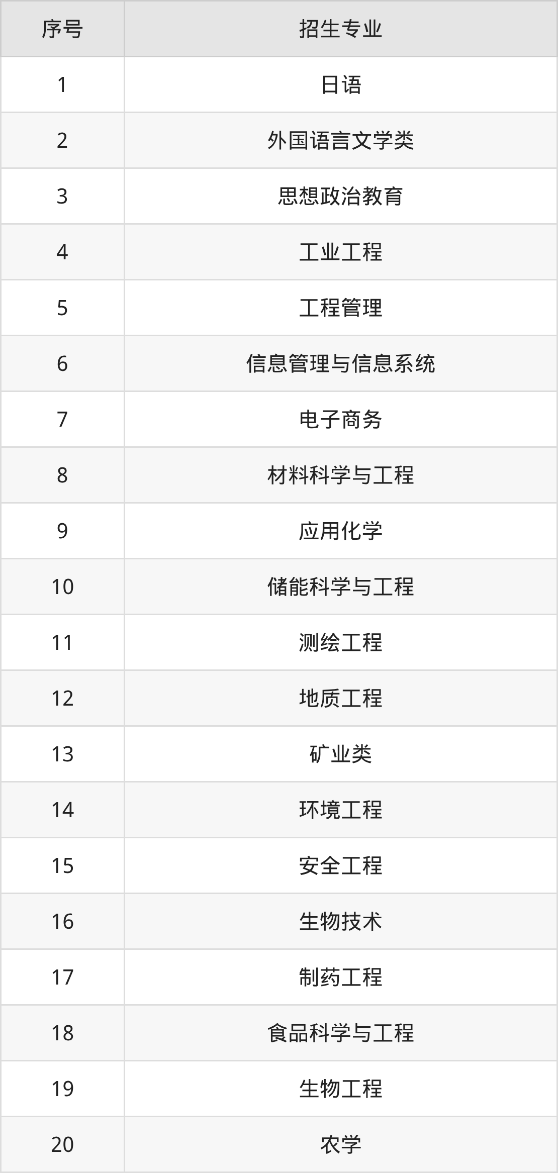 建筑类、应用心理学、经济学、工商管理类、物流管理、西班牙语、中国语言文学类、广播电视学、法学类、会计学