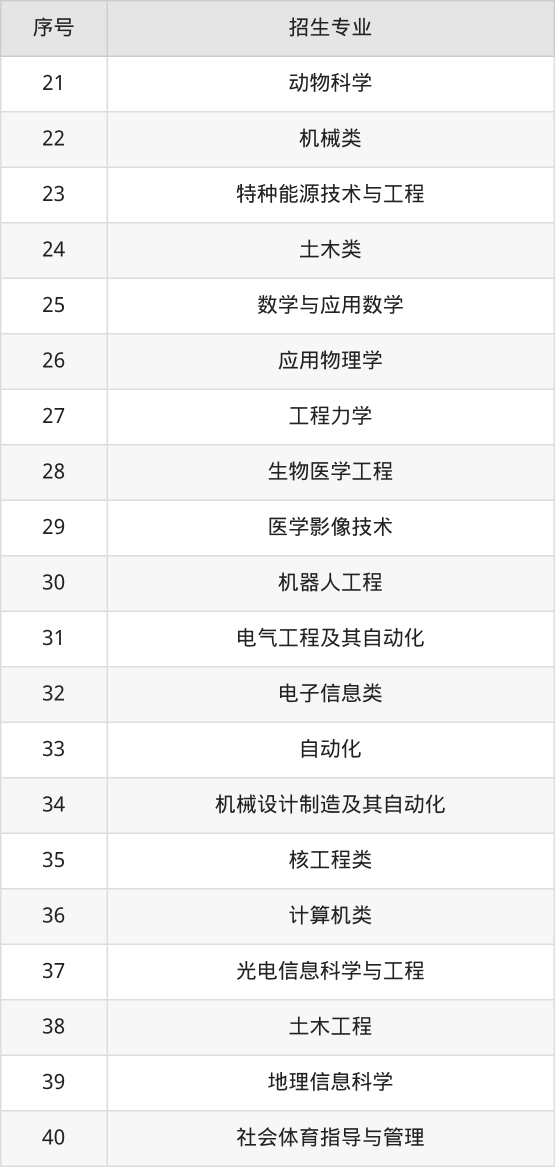 (3)色觉异常II度(俗称色盲)不予录取的专业:应用化学、建筑学、城乡规划、数字媒体艺术、社会体育指导与管理、运动康复;