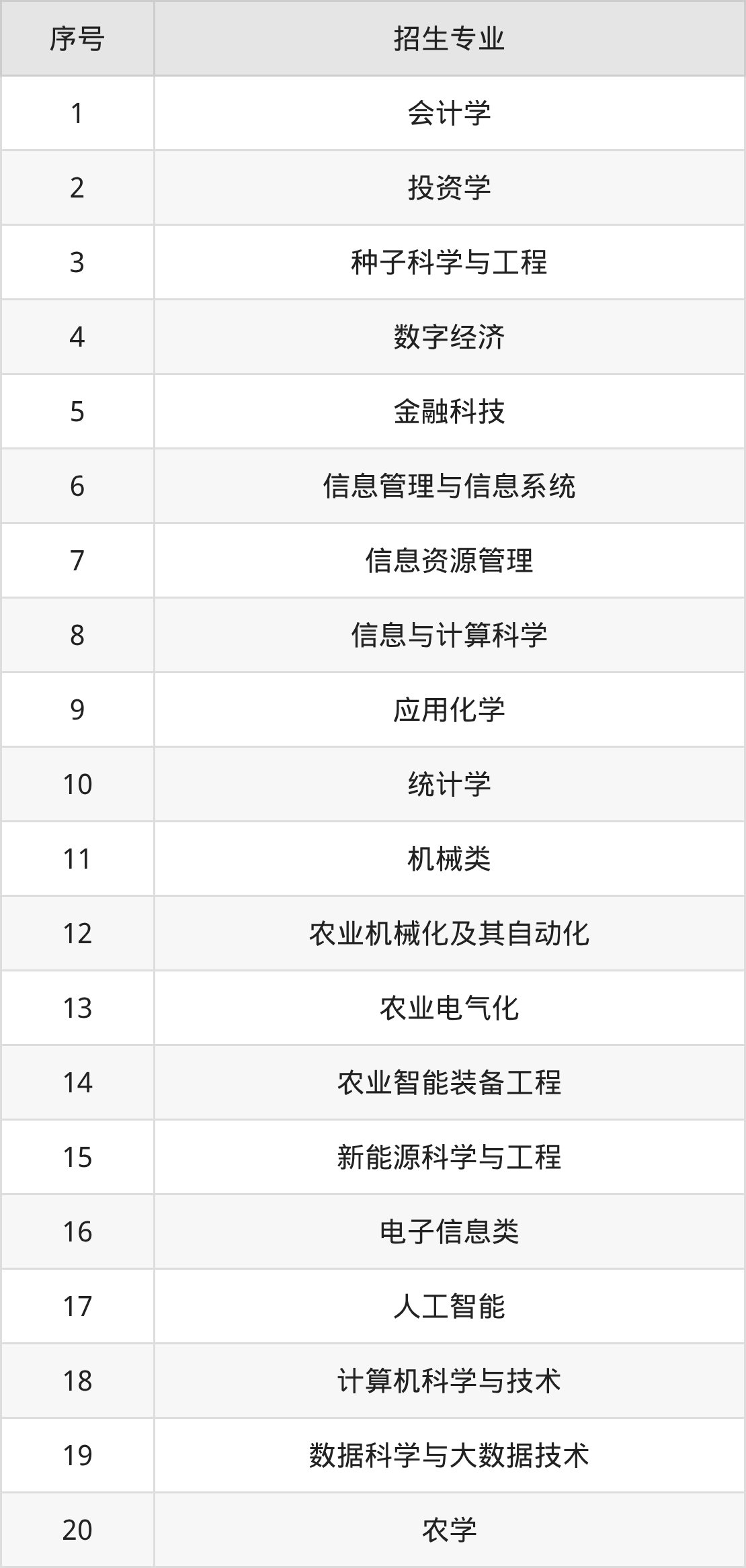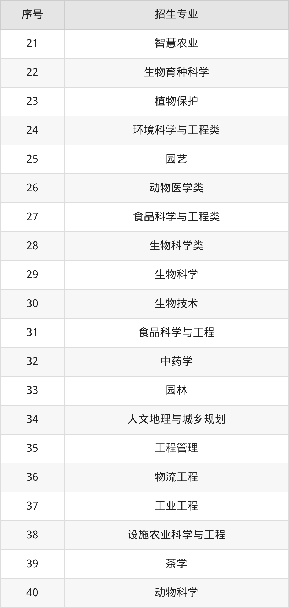 风景园林、国际经济与贸易、农林经济管理、工商管理类、公共管理类、英语、日语、社会学类、文化遗产、金融学