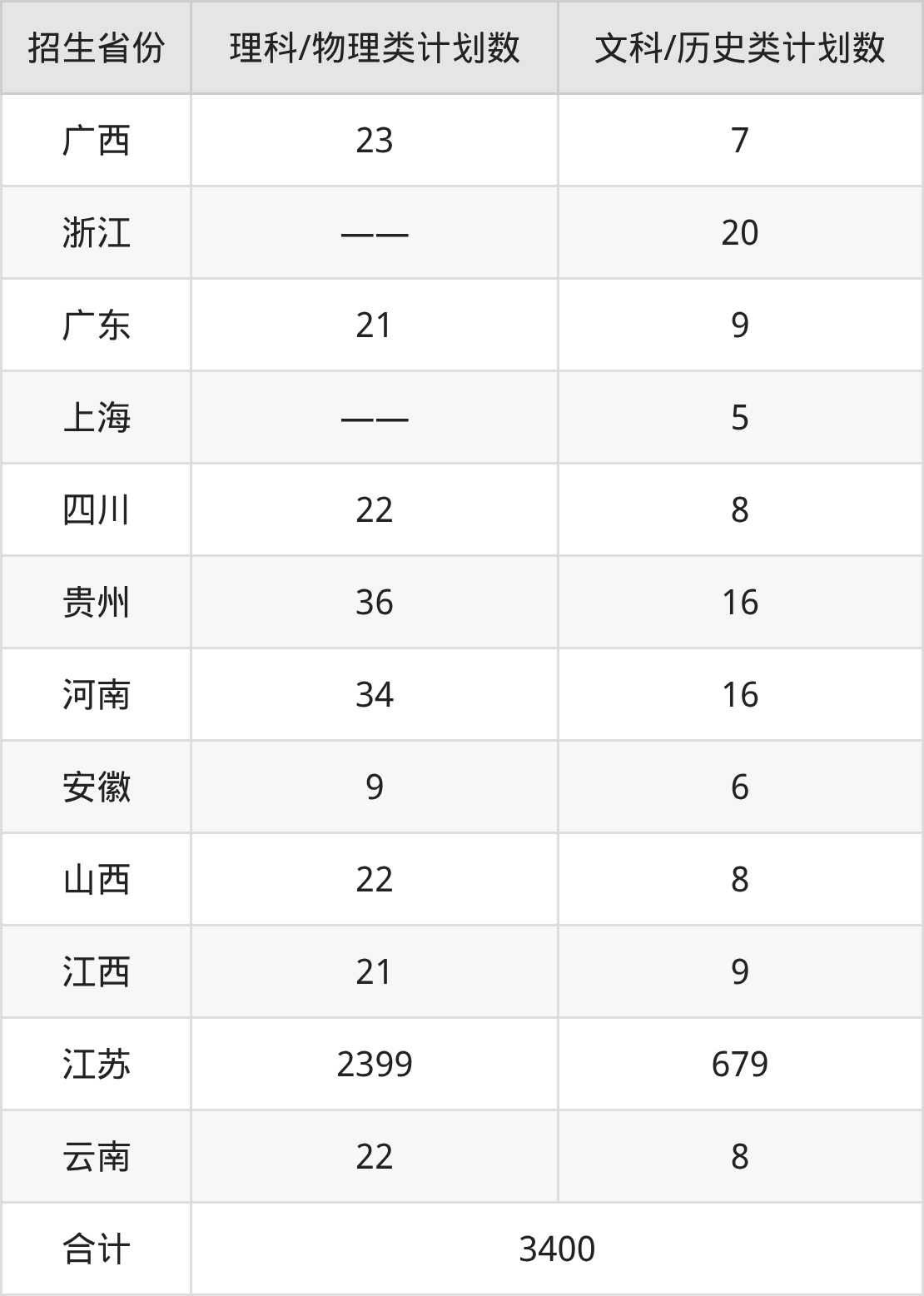 分省招生计划: