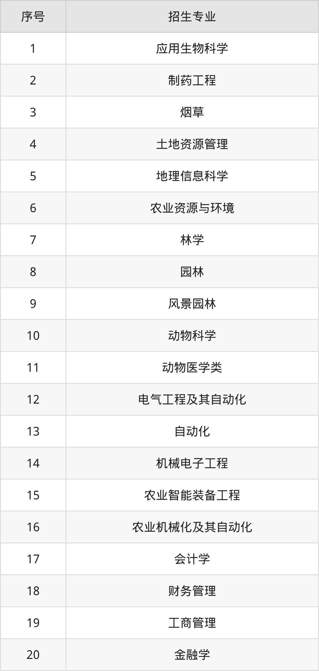 农学、园艺、农林经济管理、水利水电工程、种子科学与工程、智慧农业、生物育种科学、智慧牧业科学与工程、植物科学与技术、植物保护