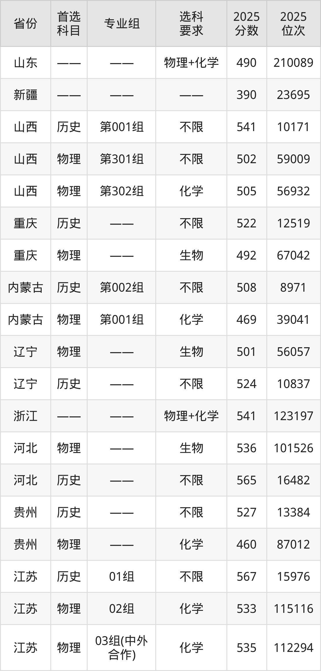 7、浙江2025年山东农业大学在浙江最低录取分数线:541分。
