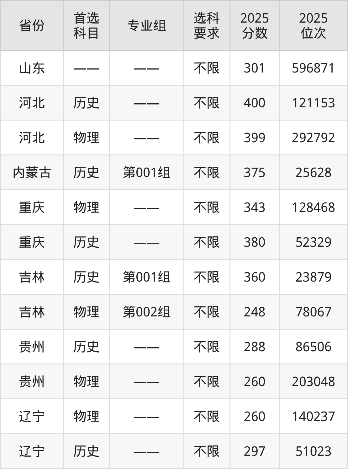 4、重庆2025年安阳职业技术学院在重庆最低录取分数线:物理类343分、历史类380分。