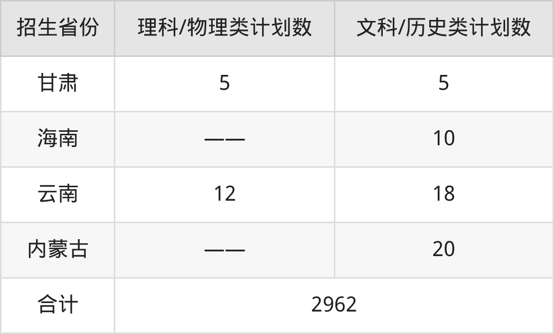 分科类招生计划:3+3省份70人、历史类1593人、物理类1299人