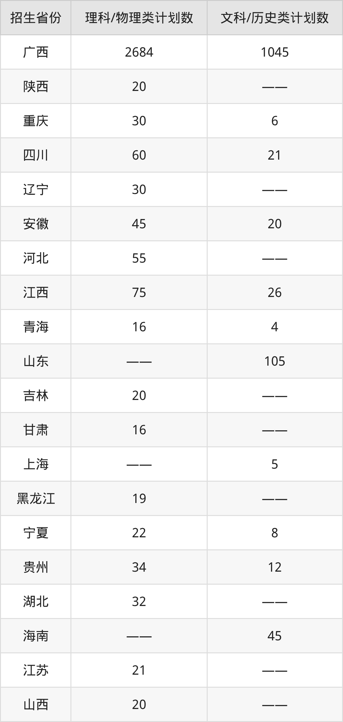 北部湾大学招生简章显示:学校在全国26个省(市、自治区)招收4833人,包括物理类3404人、3+3省份200人、历史类1229人,招生专业有地理科学、国际经济与贸易、小学教育等。