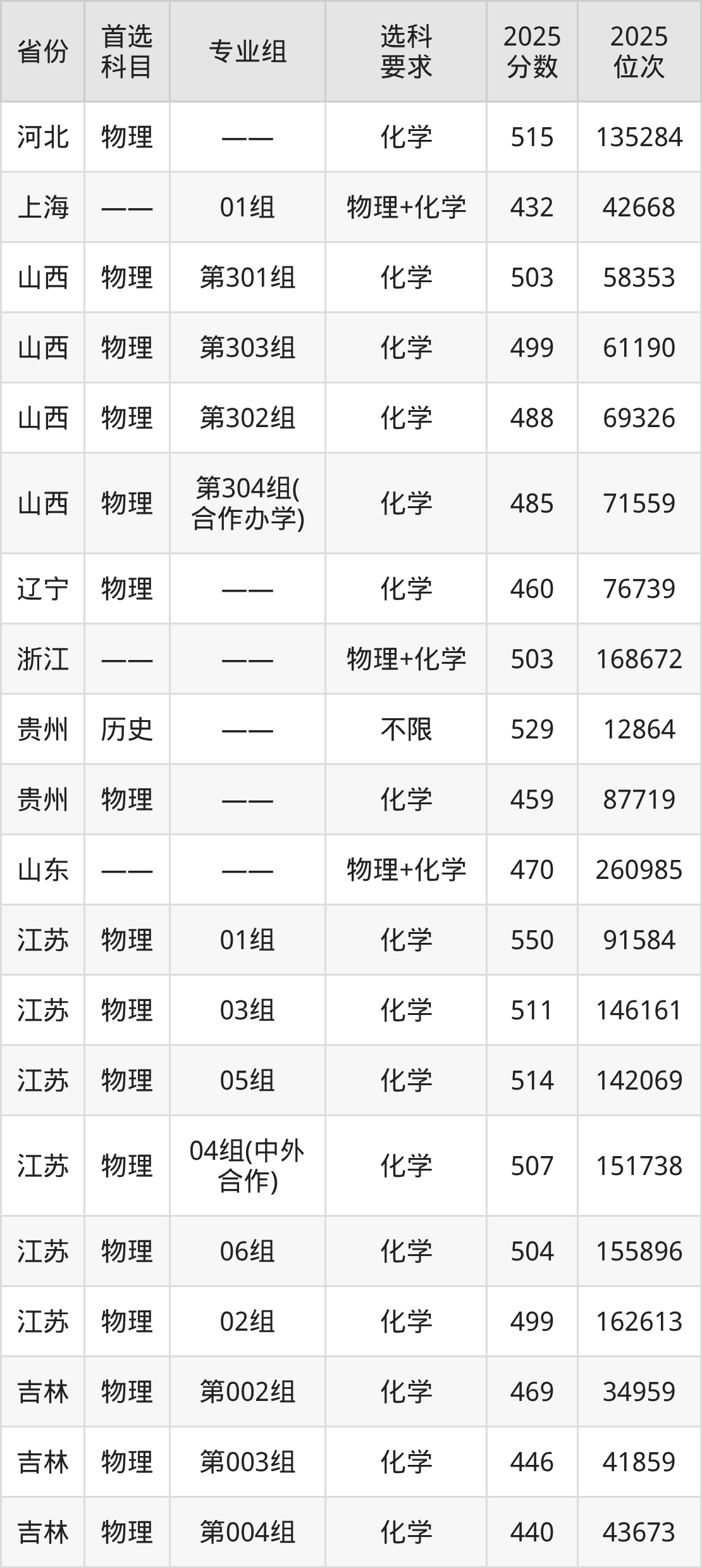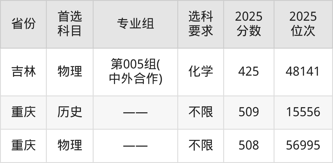 物理类各专业组分数线:第002组469分、第003组446分、第004组440分、第005组(中外合作)425分。