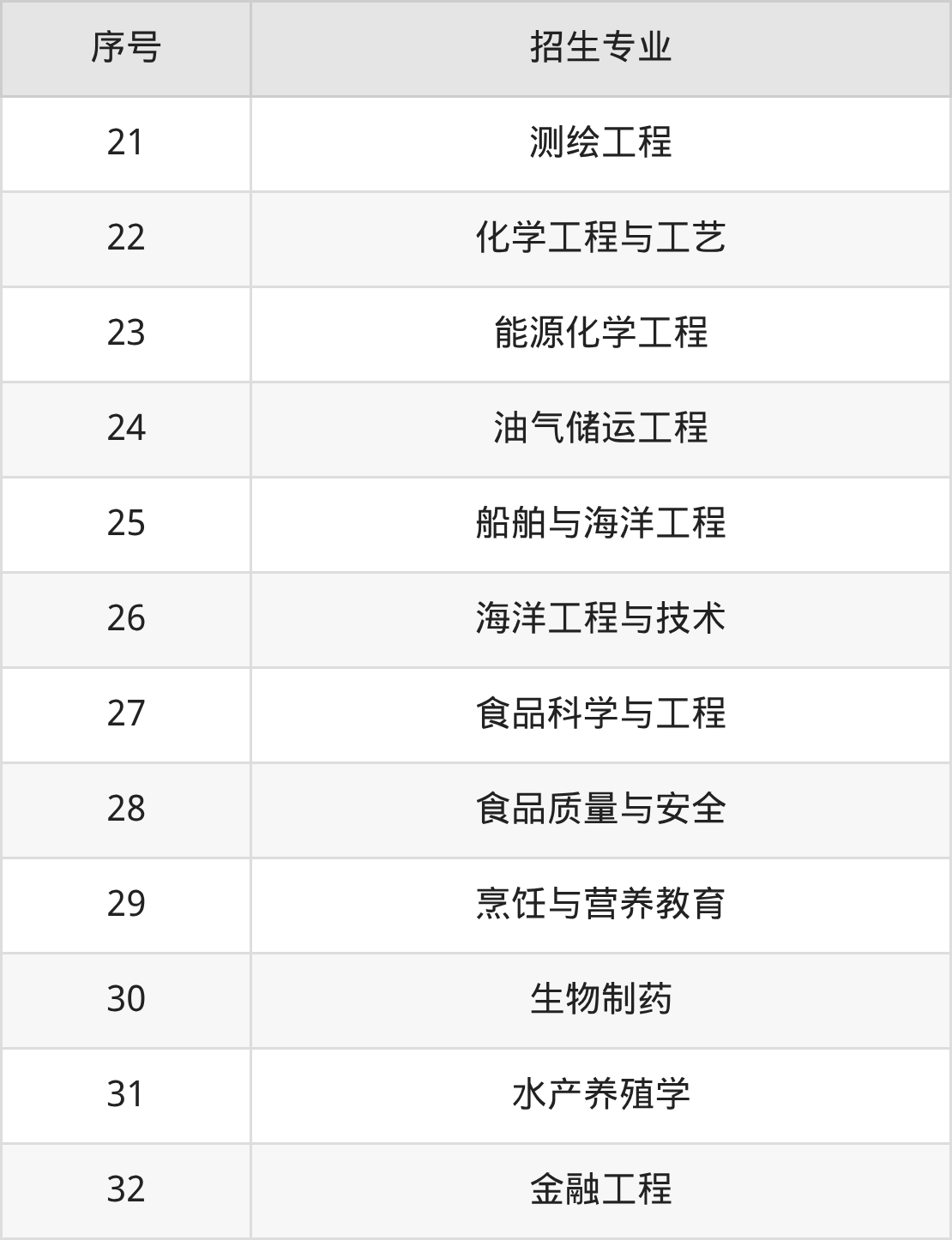 (1)不招色盲色弱者:海洋科学、水产养殖学、生物制药、油气储运工程、化学工程与工艺、能源化学工程、高分子材料与工程、食品科学与工程、体育教育、航海技术。