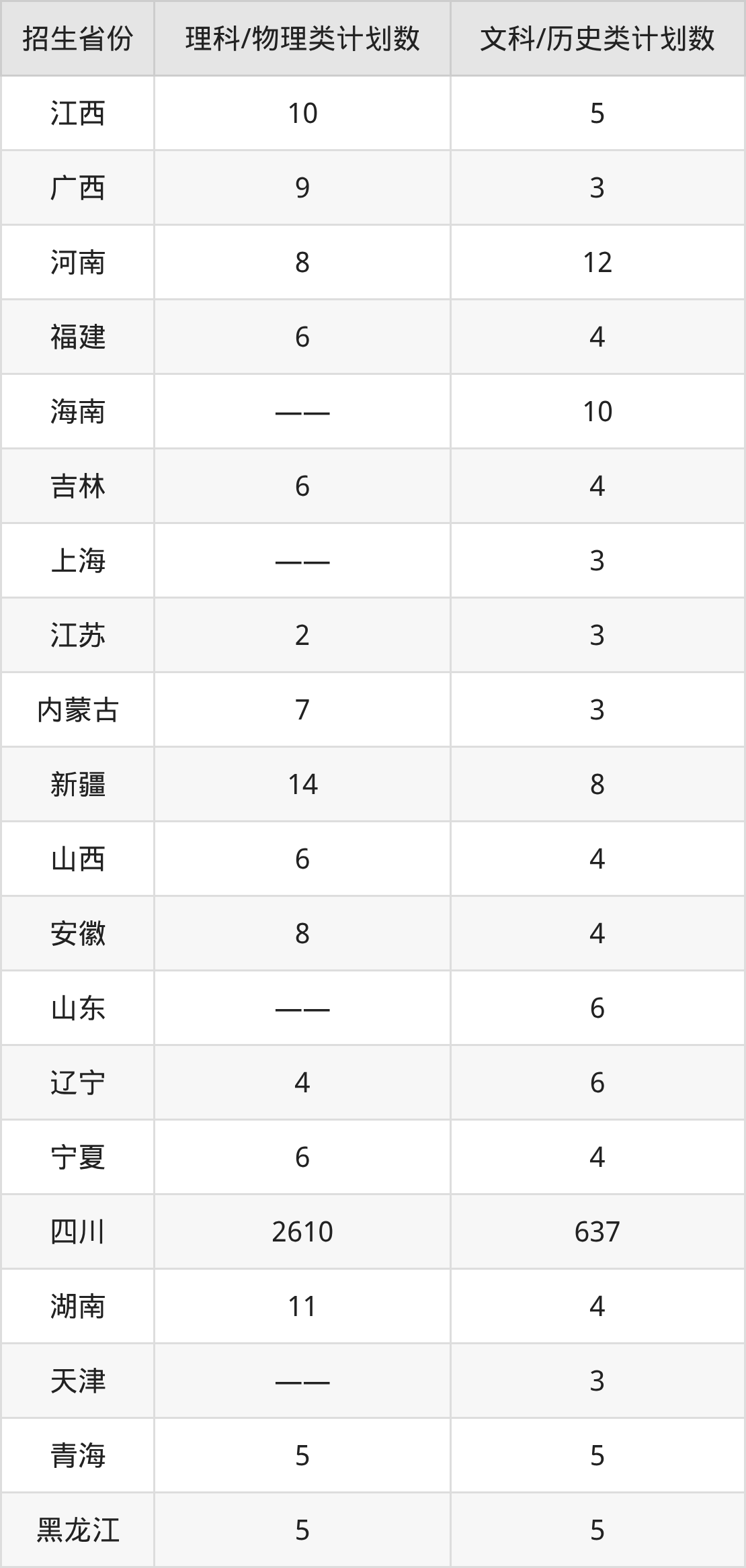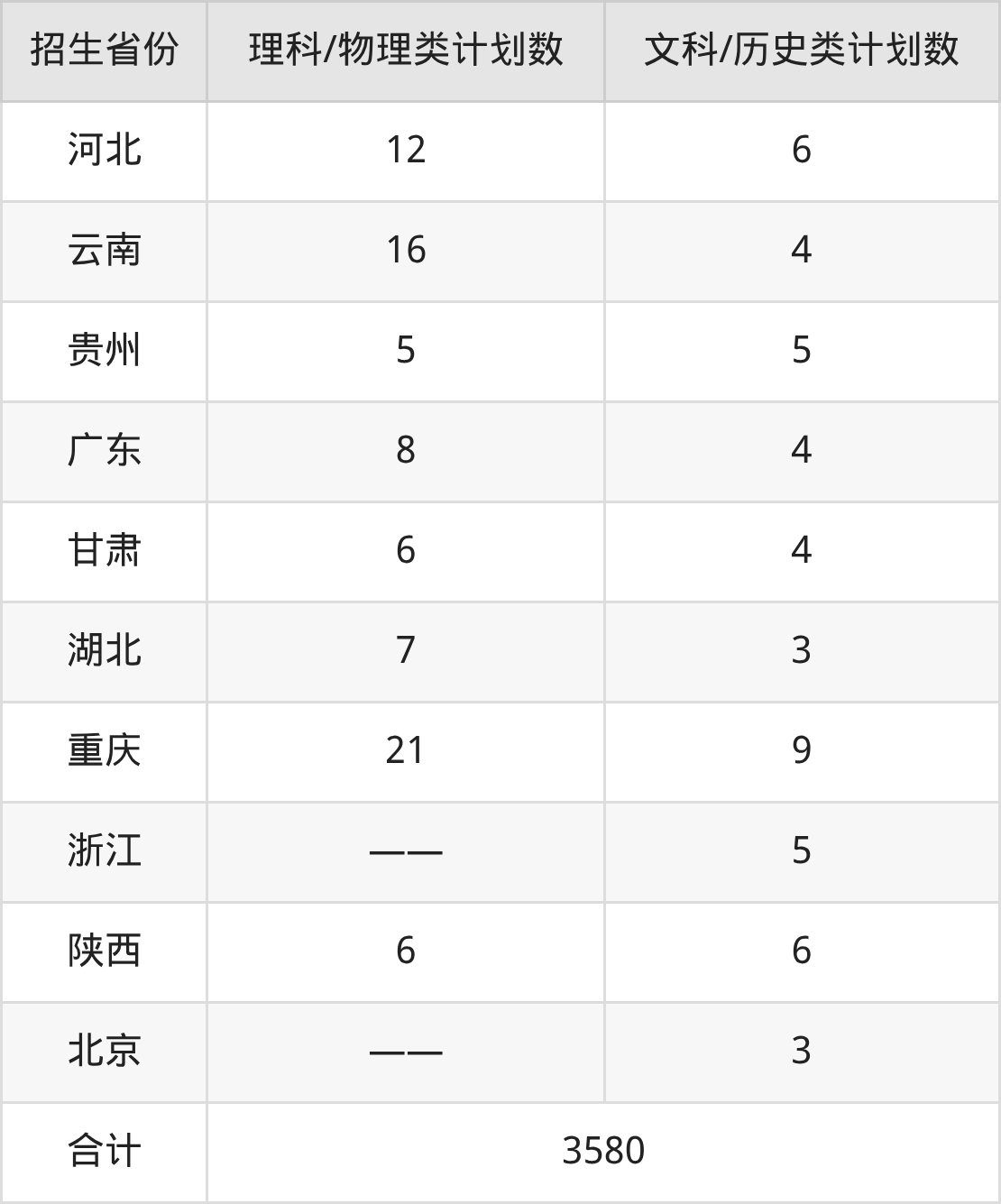分省招生计划: