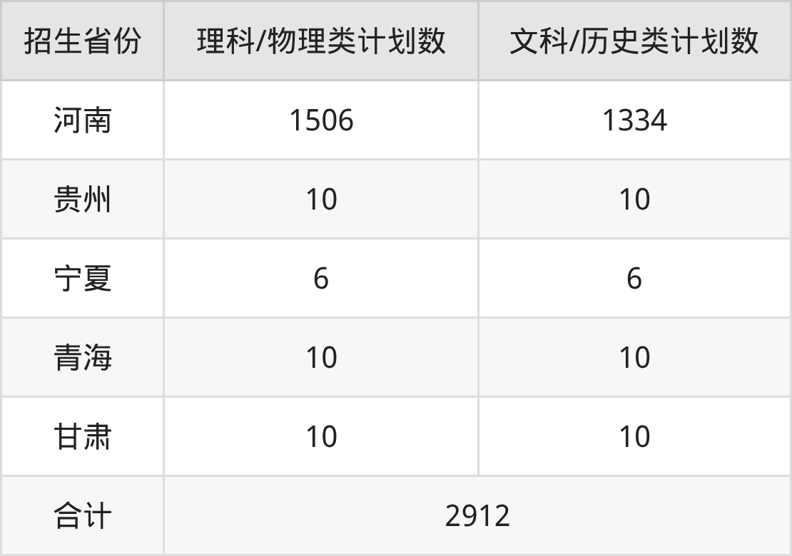 分省招生计划: