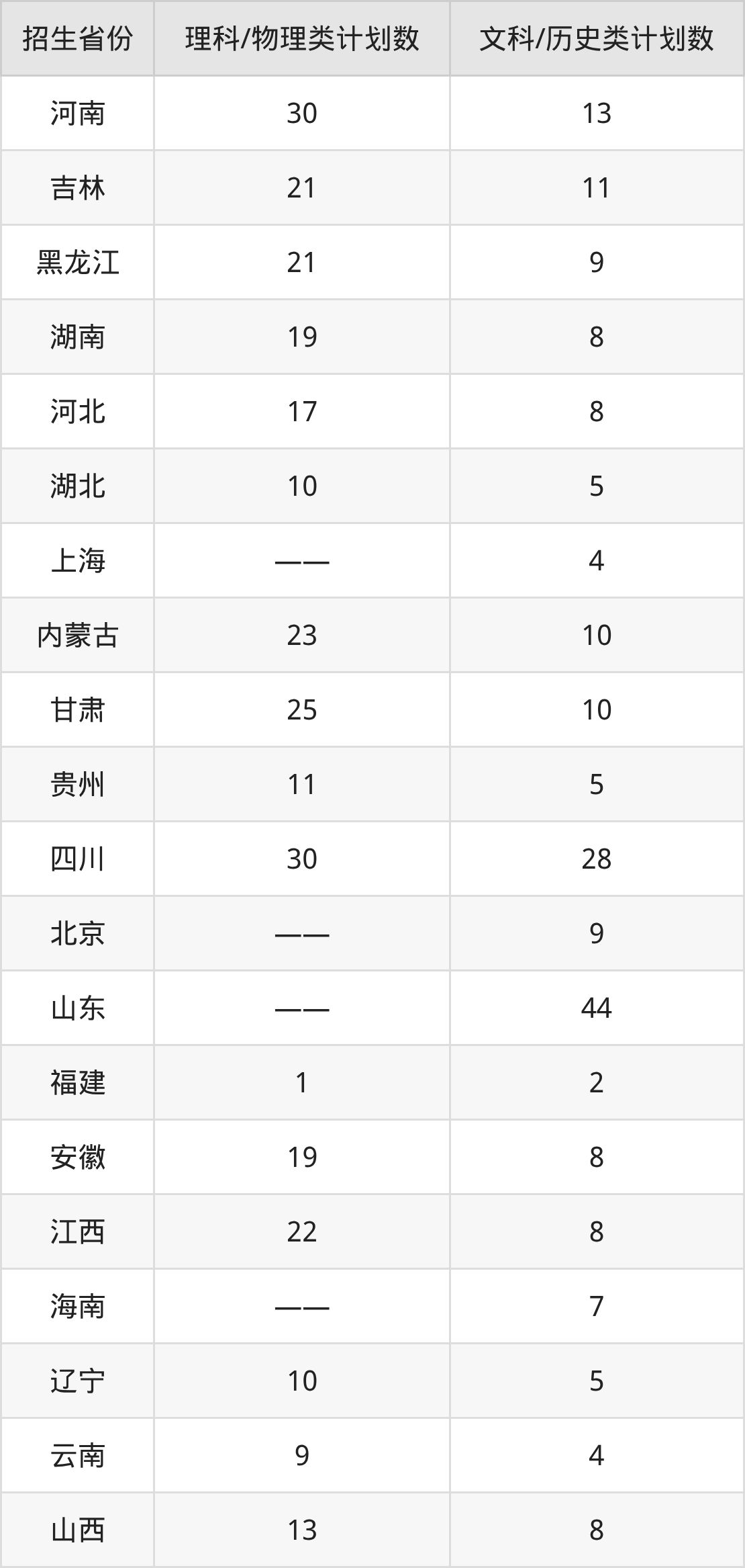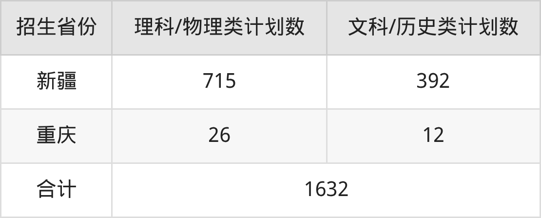 分省招生计划: