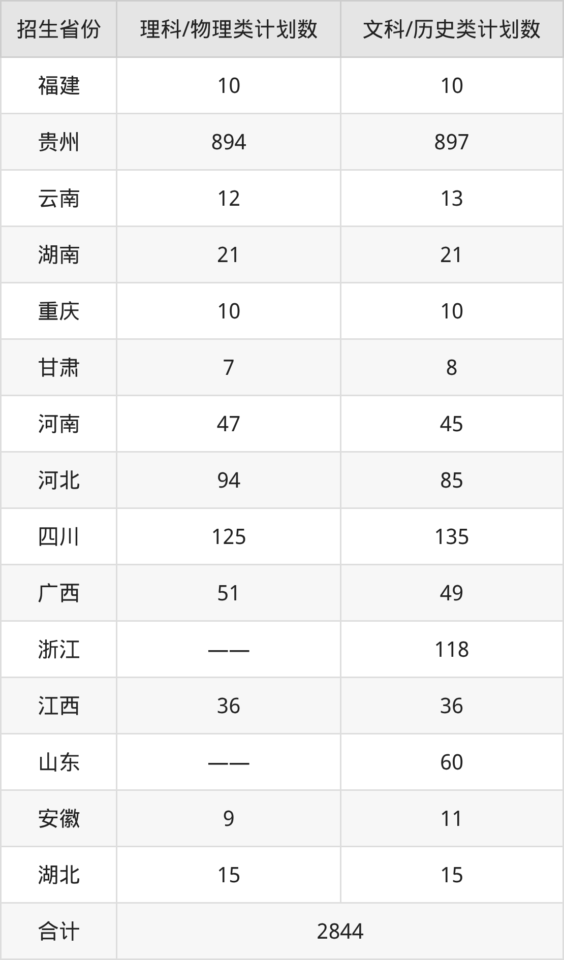 总招生计划:2844人