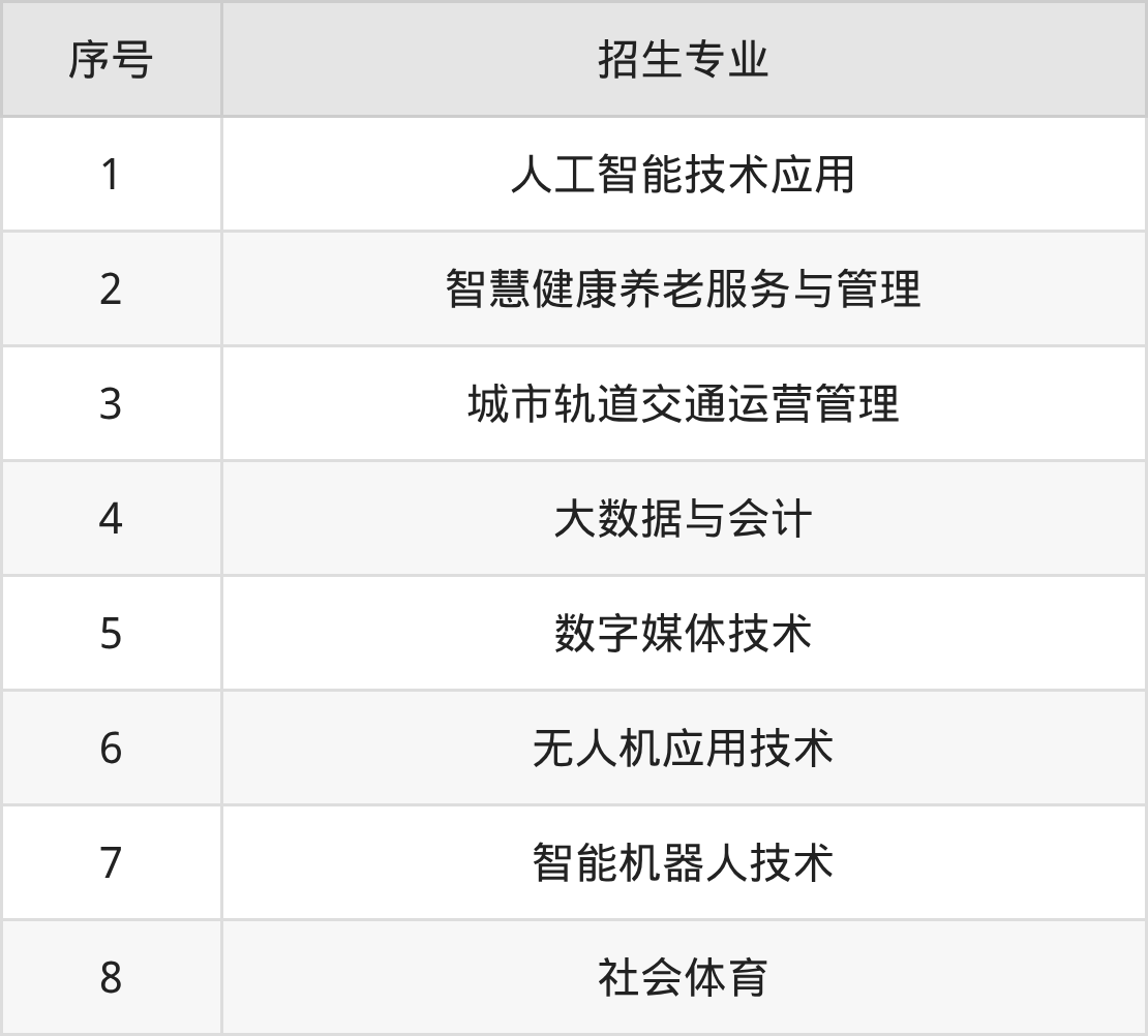 大数据技术、计算机应用技术、商务数据分析与应用、信息安全技术应用、电子竞技运动与管理、计算机网络技术、软件技术、酒店管理与数字化运营、网络营销与直播电商、云计算技术应用