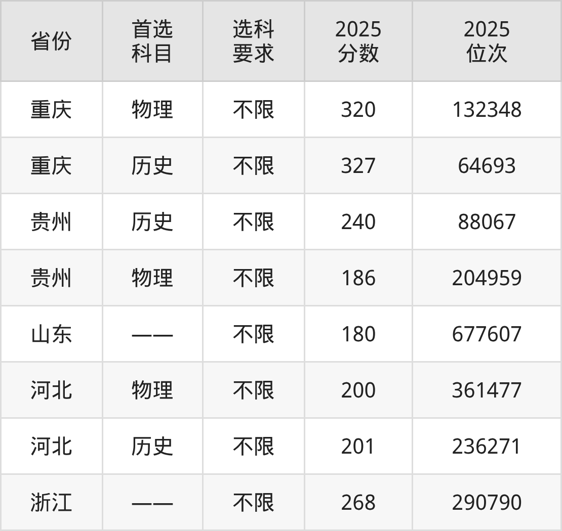 5、浙江2025年贵州铜仁数据职业学院在浙江最低录取分数线:268分。