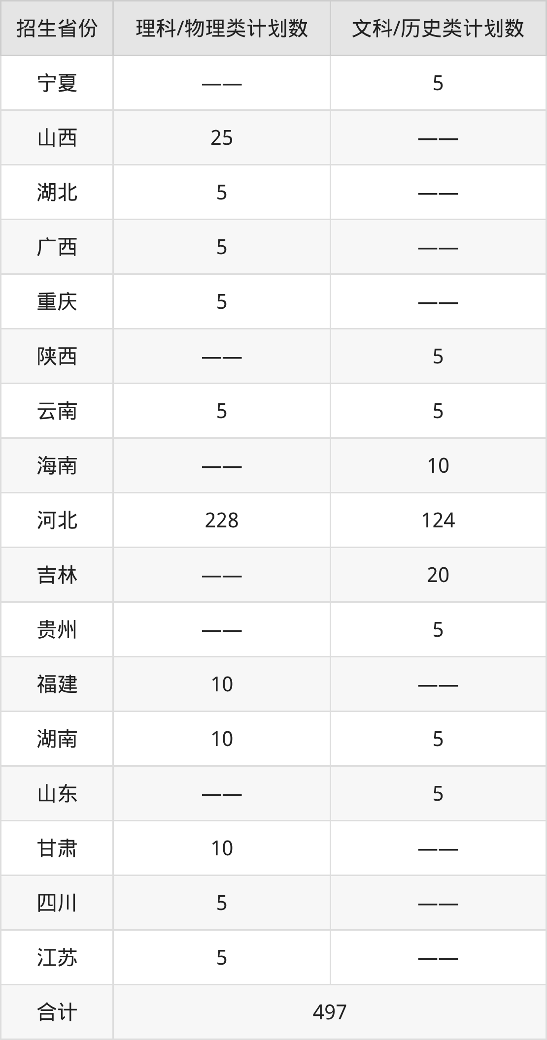 分省招生计划: