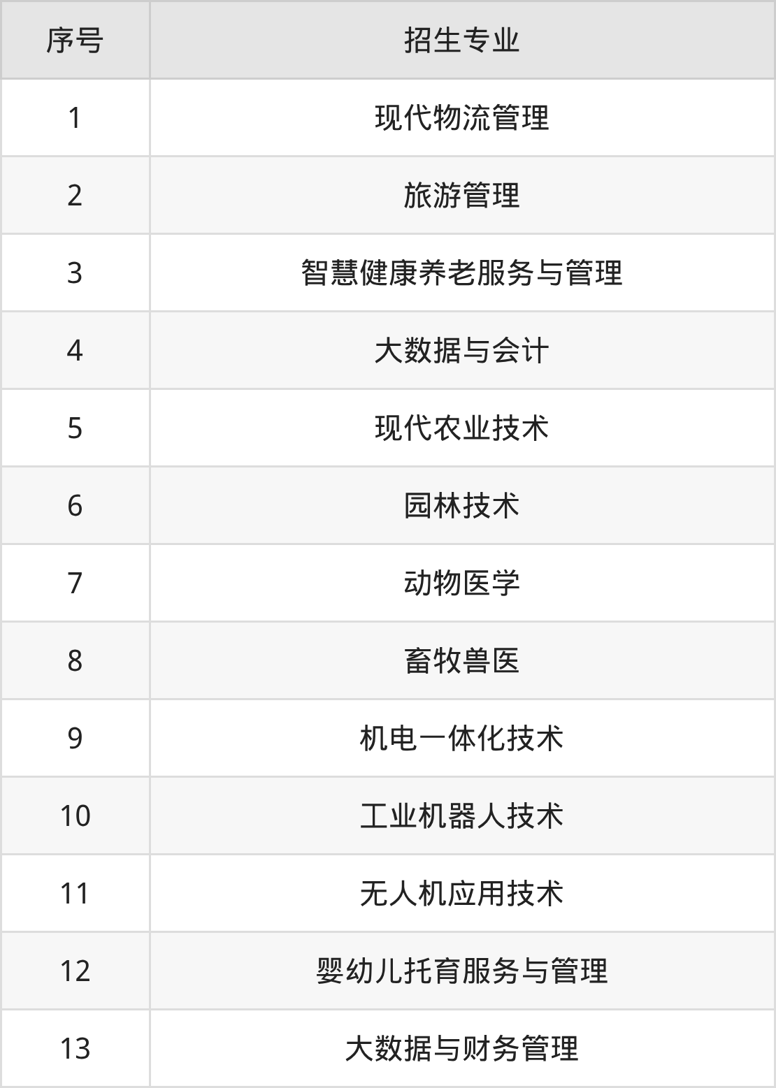 风景园林设计、建筑室内设计、工程造价、高速铁路客运服务、民航运输服务、计算机网络技术、数字媒体技术、大数据技术、金融服务与管理、市场营销