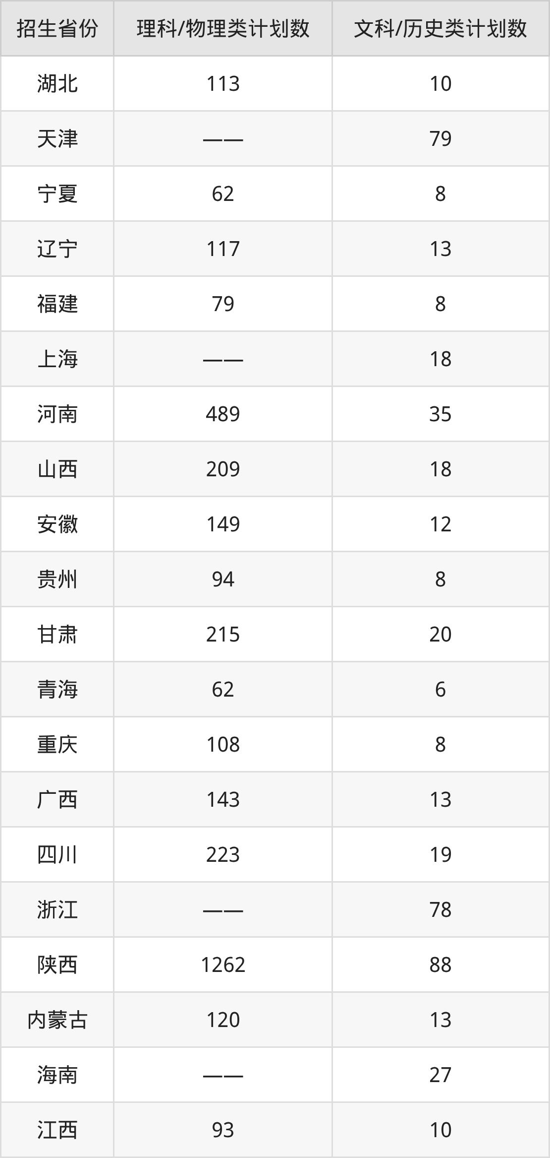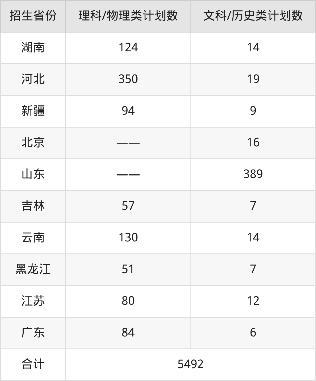 分省招生计划: