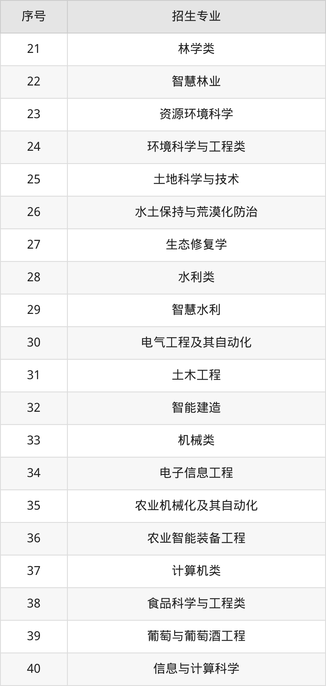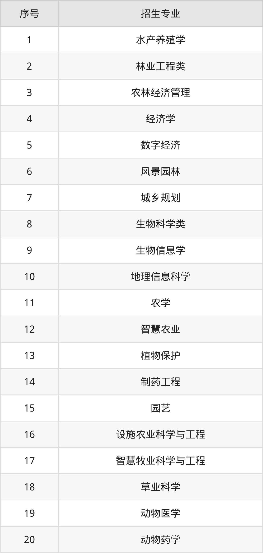 法学、社会学类、公共管理类、英语、汉语国际教育、俄语、工商管理类、经济学类、园林、动物科学