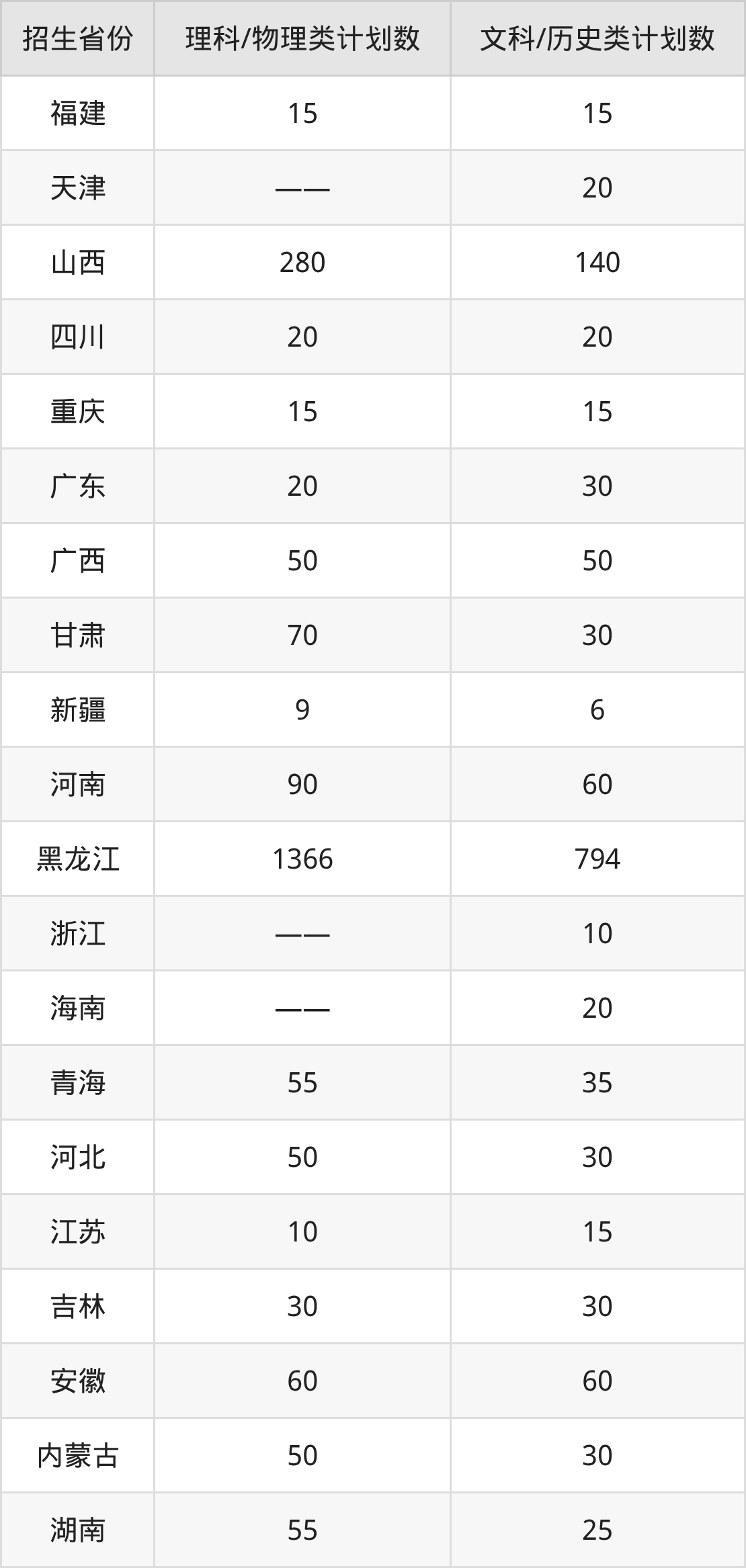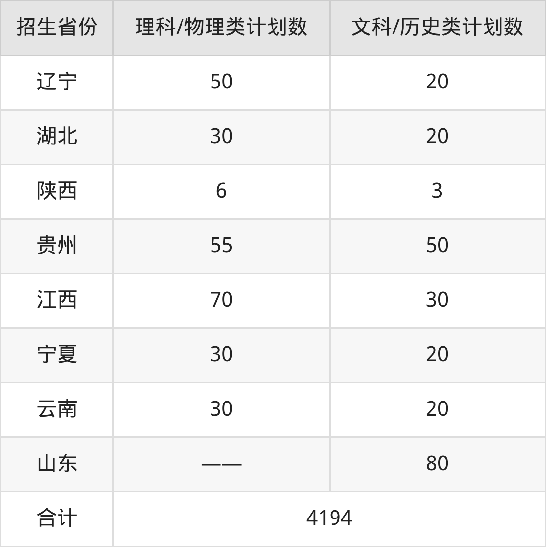 分科类招生计划:文科6人、理科9人、历史类1542人、物理类2507人、3+3省份130人