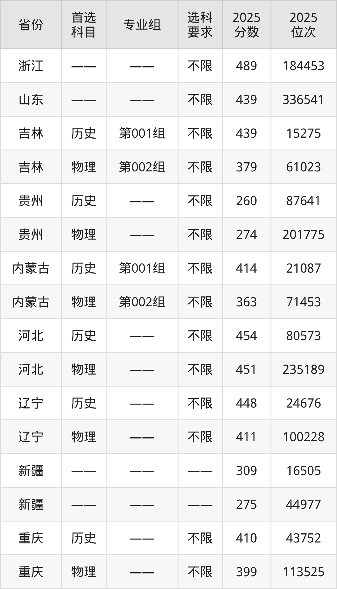 3、吉林2025年哈尔滨铁道职业技术学院在吉林最低录取分数线:历史类439分、物理类379分。