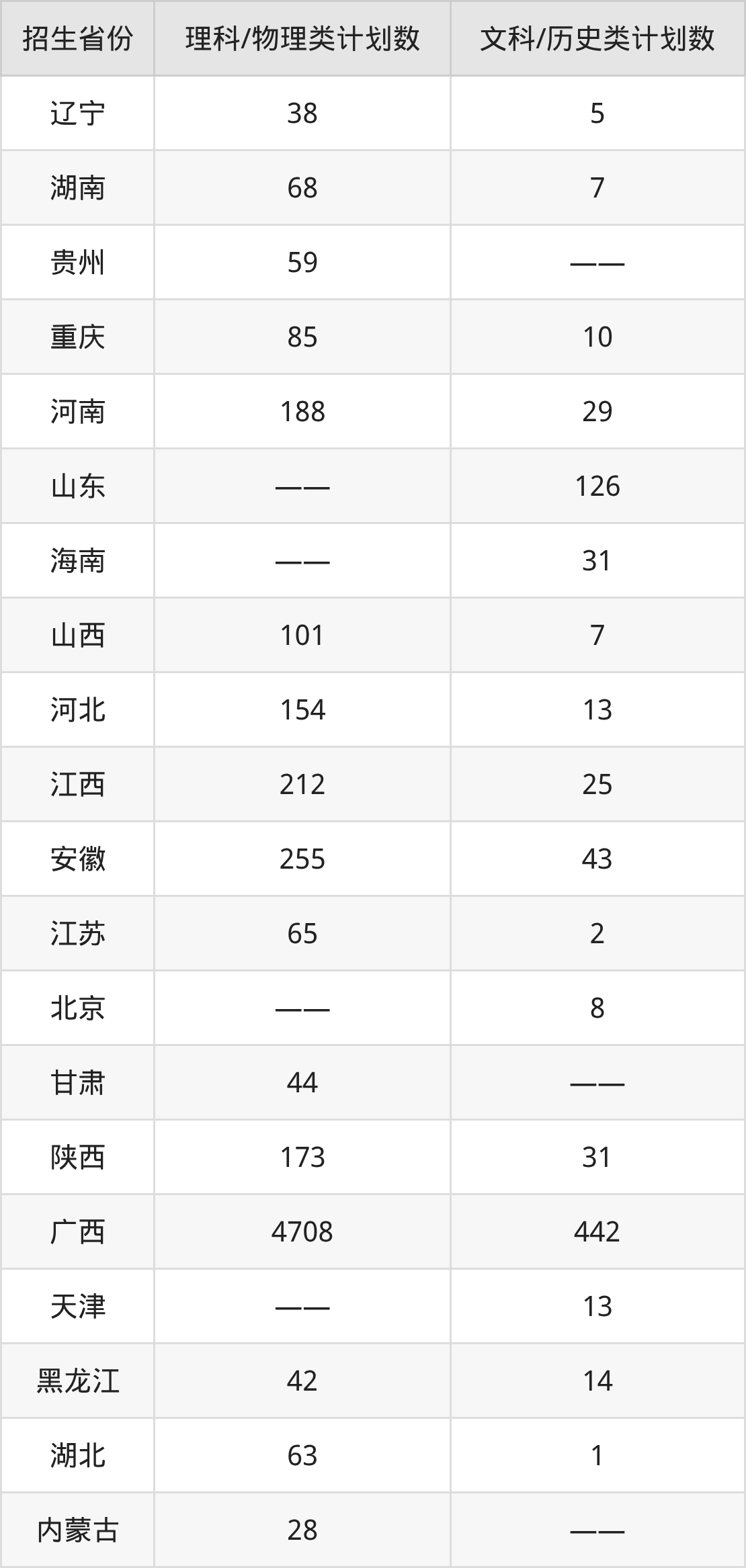 分省招生计划: