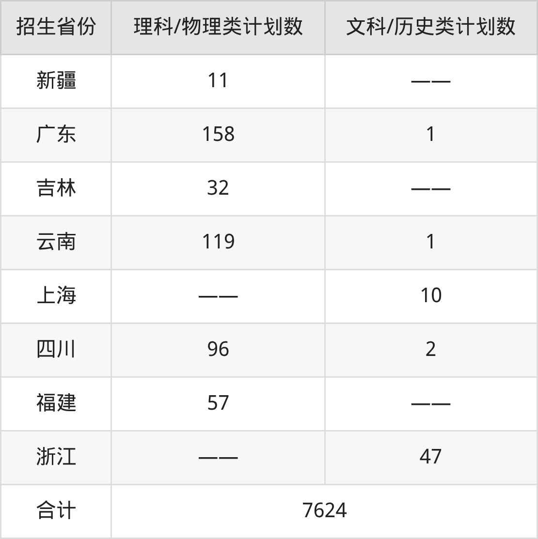 总招生计划:7624人