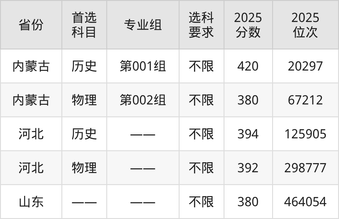 3、山东2025年河南农业职业学院在山东最低录取分数线:380分。