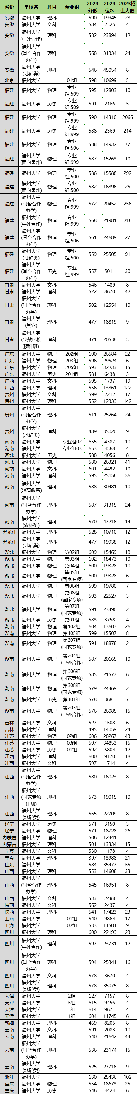 2023年福州大学在全国各省均有招生,以下将介绍福州大学在各省的高考招生人数,以及招生专业,最低分数线等内容。