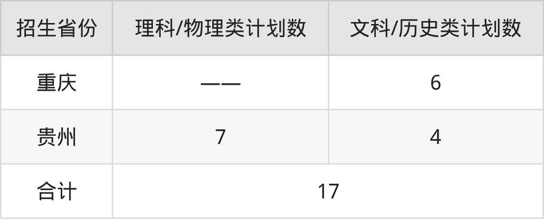 分科类招生计划:历史类10人、物理类7人