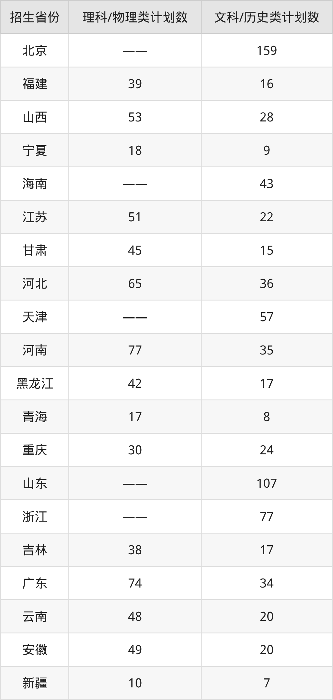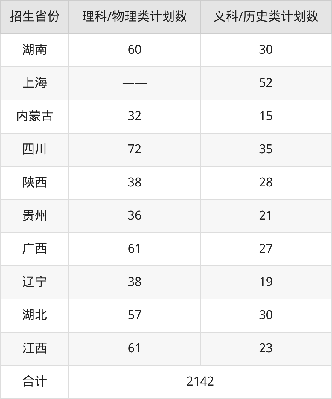 分省招生计划: