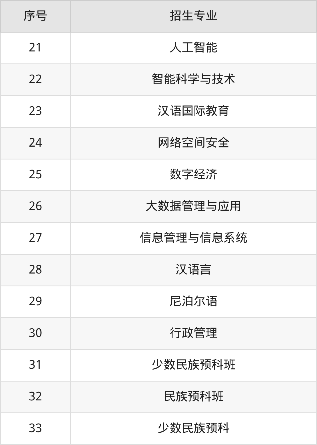 普什图语、马来语、葡萄牙语、德语、日语、意大利语、广告学、网络与新媒体、广播电视学、数字出版