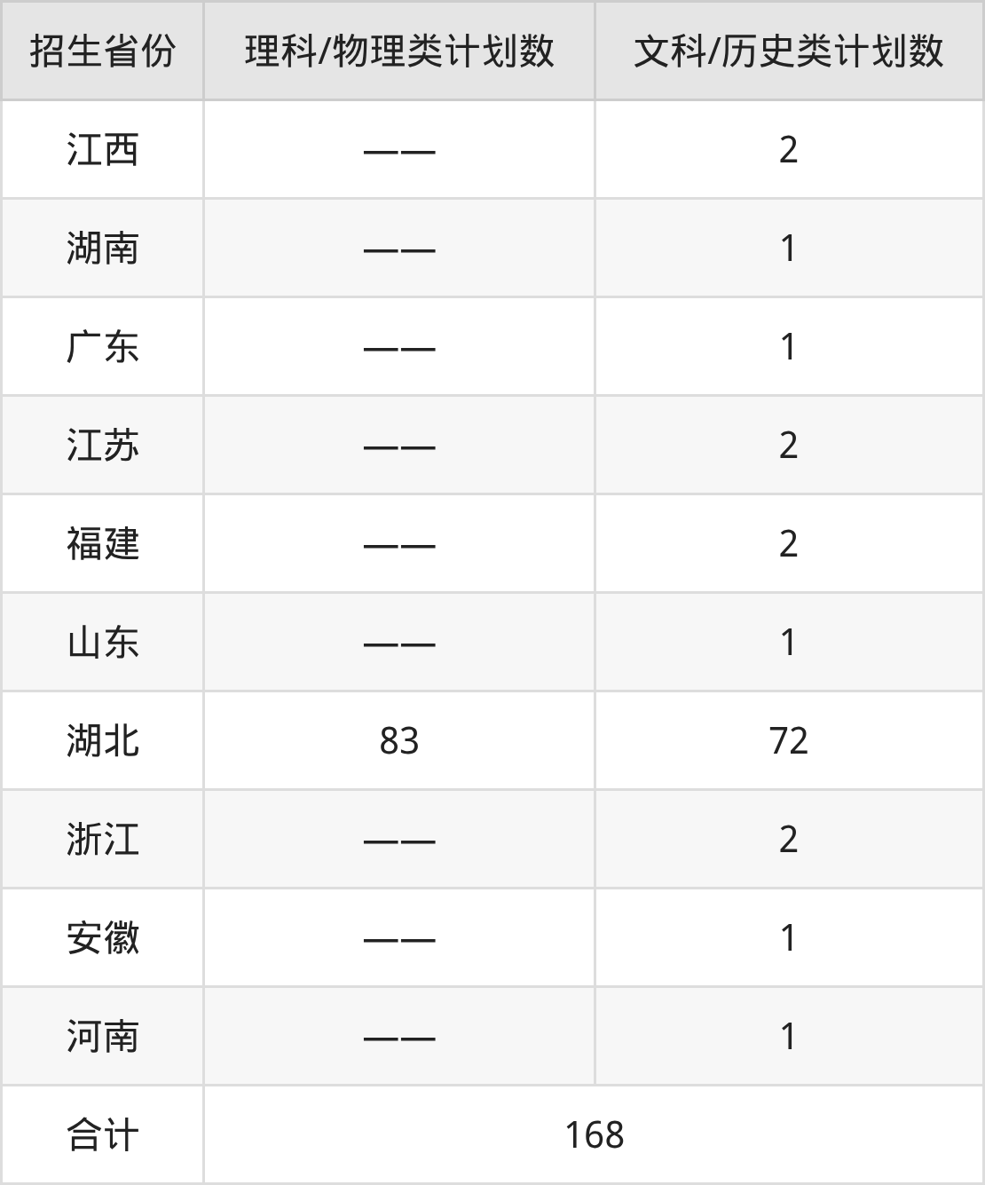 分科类招生计划:历史类82人、物理类83人、3+3省份3人