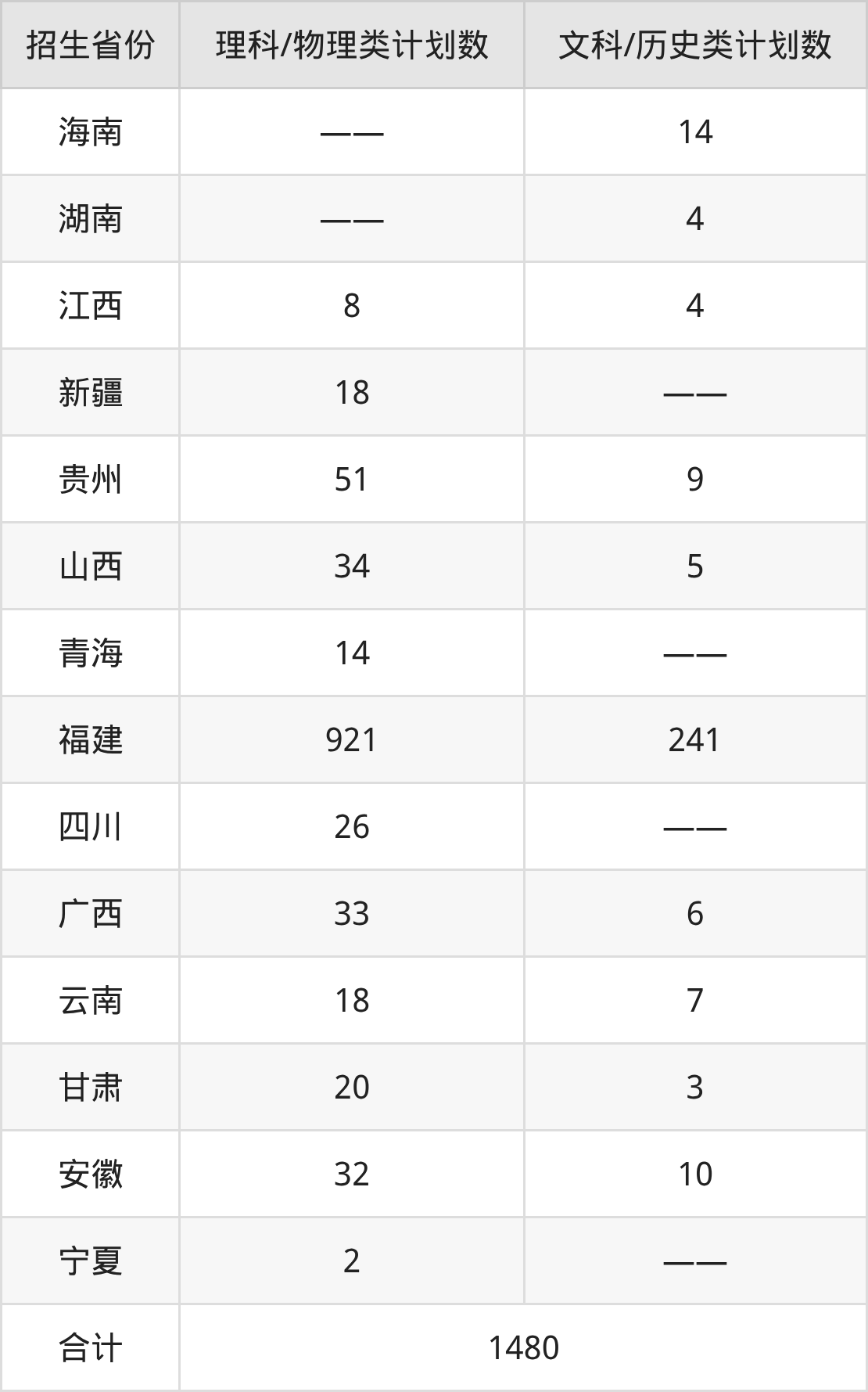 分省招生计划: