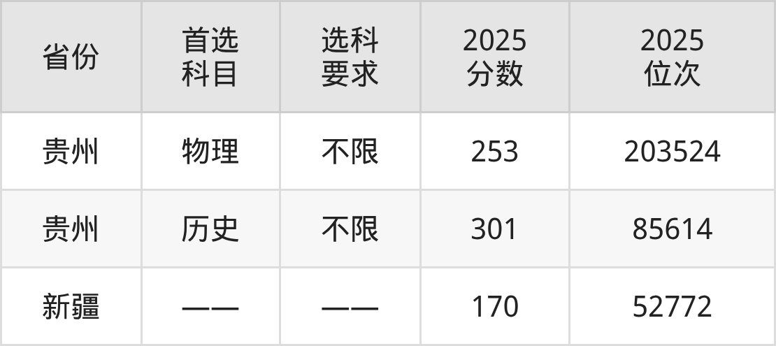 1、贵州2025年闽北职业技术学院在贵州最低录取分数线:物理类253分、历史类301分。